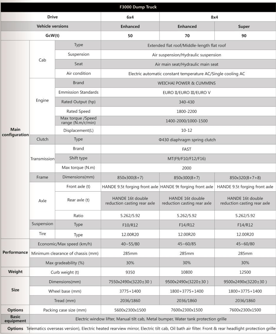 • F3000 सुपर संस्करण पर अपनाए गए सभी प्रकार के उपकरणों की ग्राउंड क्लीयरेंस सभी को उच्च ट्रैफ़िकबिलिटी के लिए उठाया गया है, जिसमें रेडिएटर, संचायक बॉक्स, मफलर, एयर जलाशय, ईंधन टैंक शामिल हैं।
