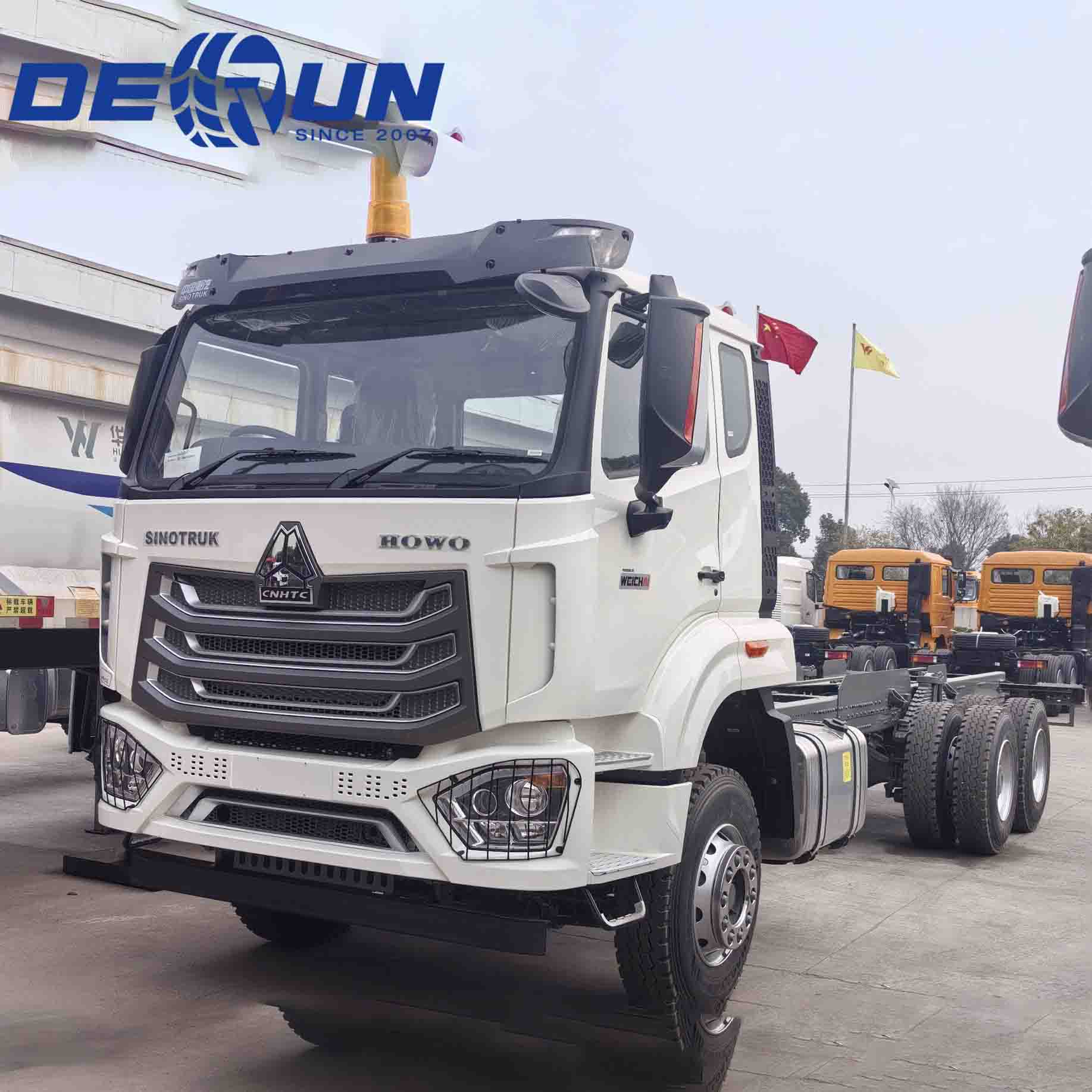सिनोट्रुक हॉवो एनएक्स 6 × 4 कार्गो चेसिस ट्रक एक उच्च-टॉर्क डीजल इंजन (400-460 हॉर्सपावर संस्करण) से लैस है, जो एक विश्वसनीय ट्रांसमिशन के साथ जोड़ा गया है, जो आसानी से खड़ी ढलानों और बीहड़ इलाके को जीतता है। प्रबलित चेसिस और हल्के डिजाइन स्व-वजन को कम करते हुए, पेलोड क्षमता को बढ़ाते हुए लोड-असर क्षमता सुनिश्चित करते हैं। CAB व्यावहारिकता और आराम को प्राथमिकता देता है, जिसमें वाइड-व्यू विंडो, बेसिक एयर कंडीशनिंग और एंटी-वाइब्रेशन सीटें होती हैं, जिससे यह उच्च तापमान, धूल भरे वातावरण के लिए उपयुक्त हो जाता है। प्रमुख घटक निर्यात बाजारों के लिए अनुकूलित हैं, और एक वैश्विक रखरखाव नेटवर्क कुशल और सुविधाजनक स्पेयर पार्ट्स आपूर्ति सुनिश्चित करता है।